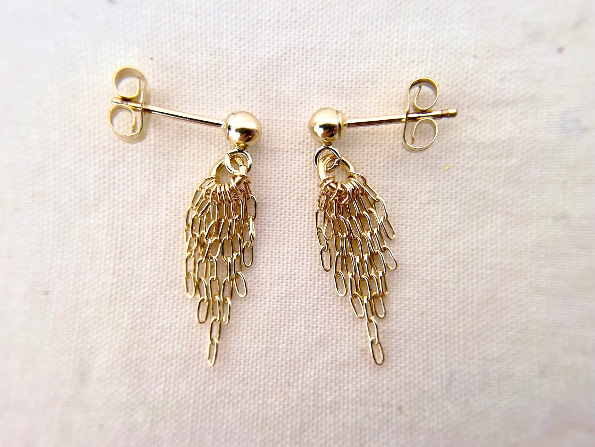 The shape resembles the wings of an angel to lift your spirits. The liquidy movement of the chains catches the sparkly lights.