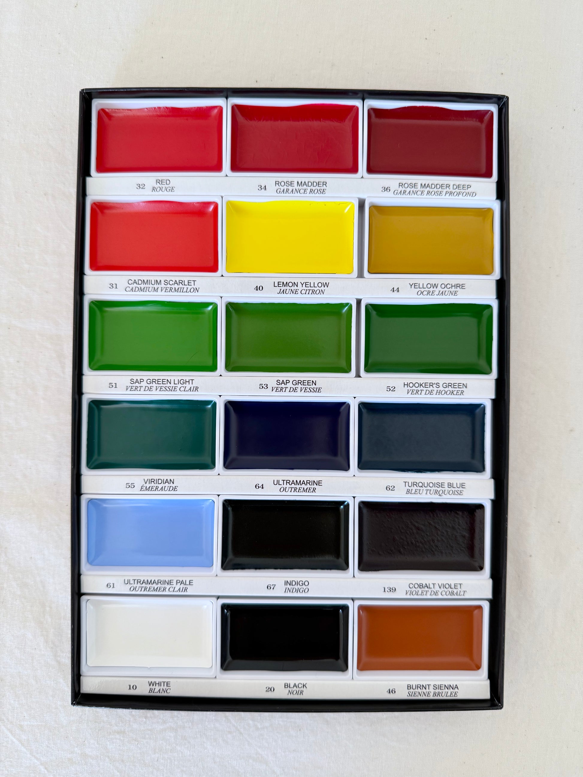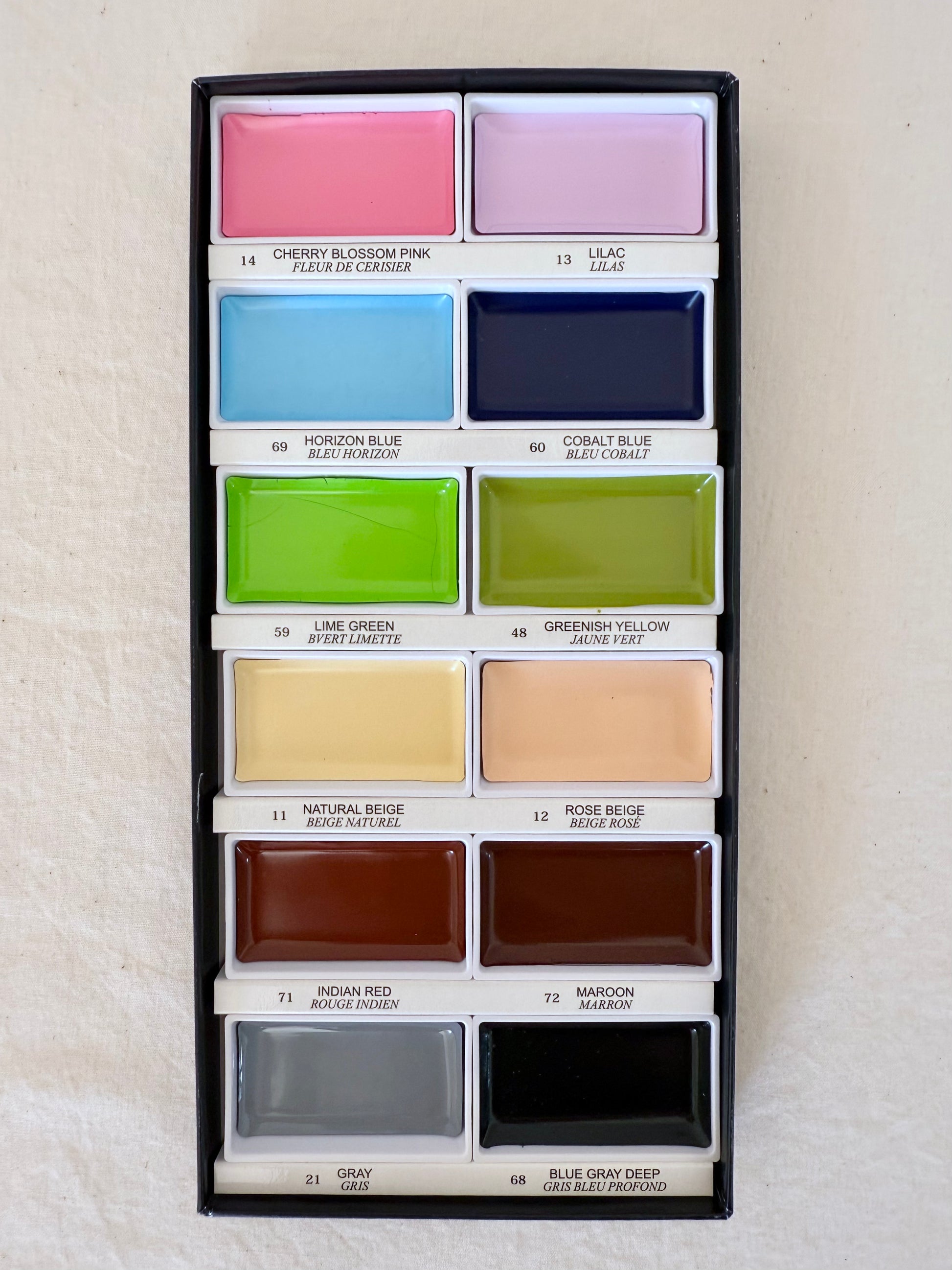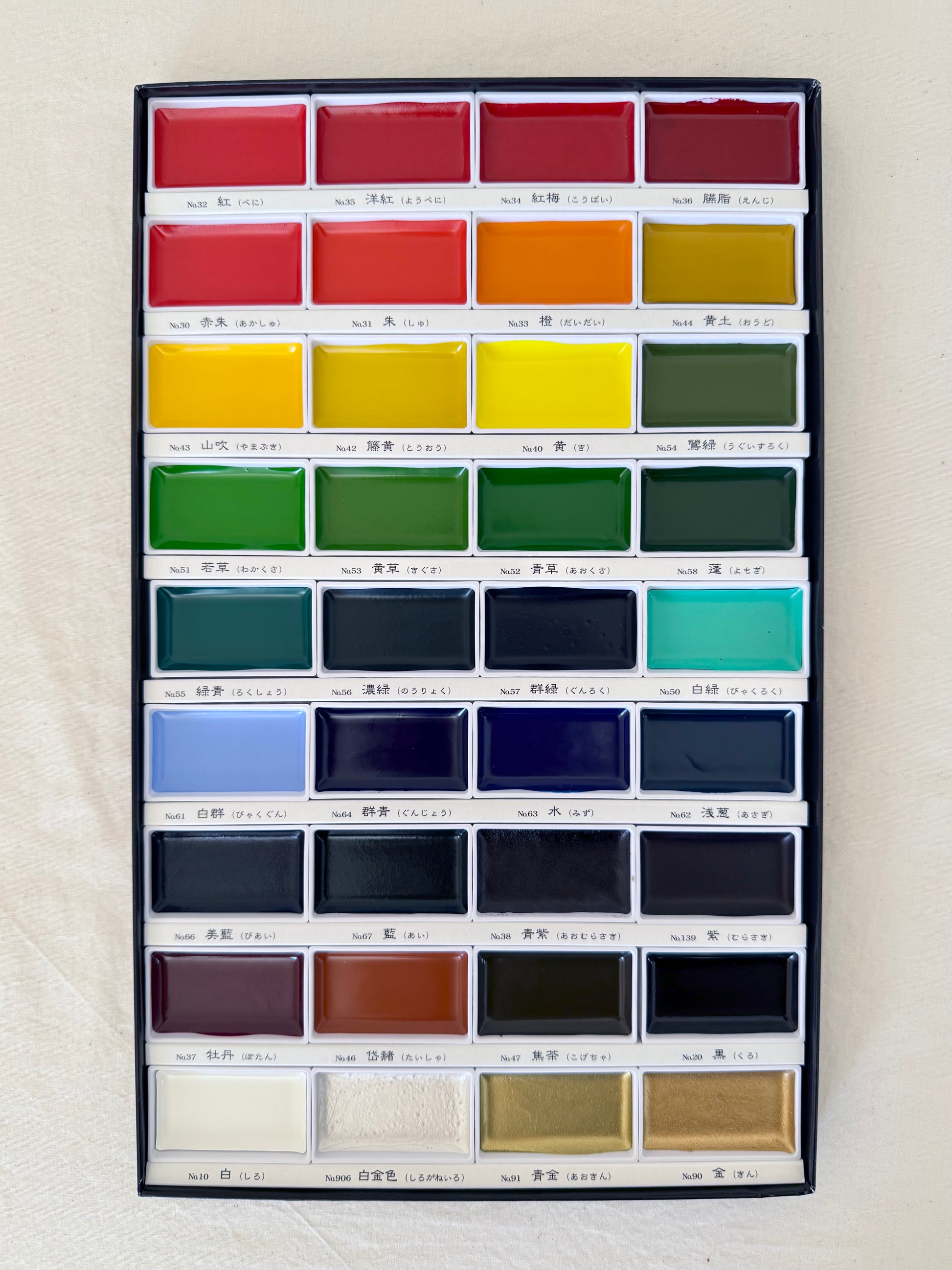 These are traditional Japanese pan watercolors for professional artists and crafters. They are recognized by their vivid color and quick dissolution. A wide range of vivid colors can be used without mixing colors. These bold colors that are lightfast, so your art will remain vivid.