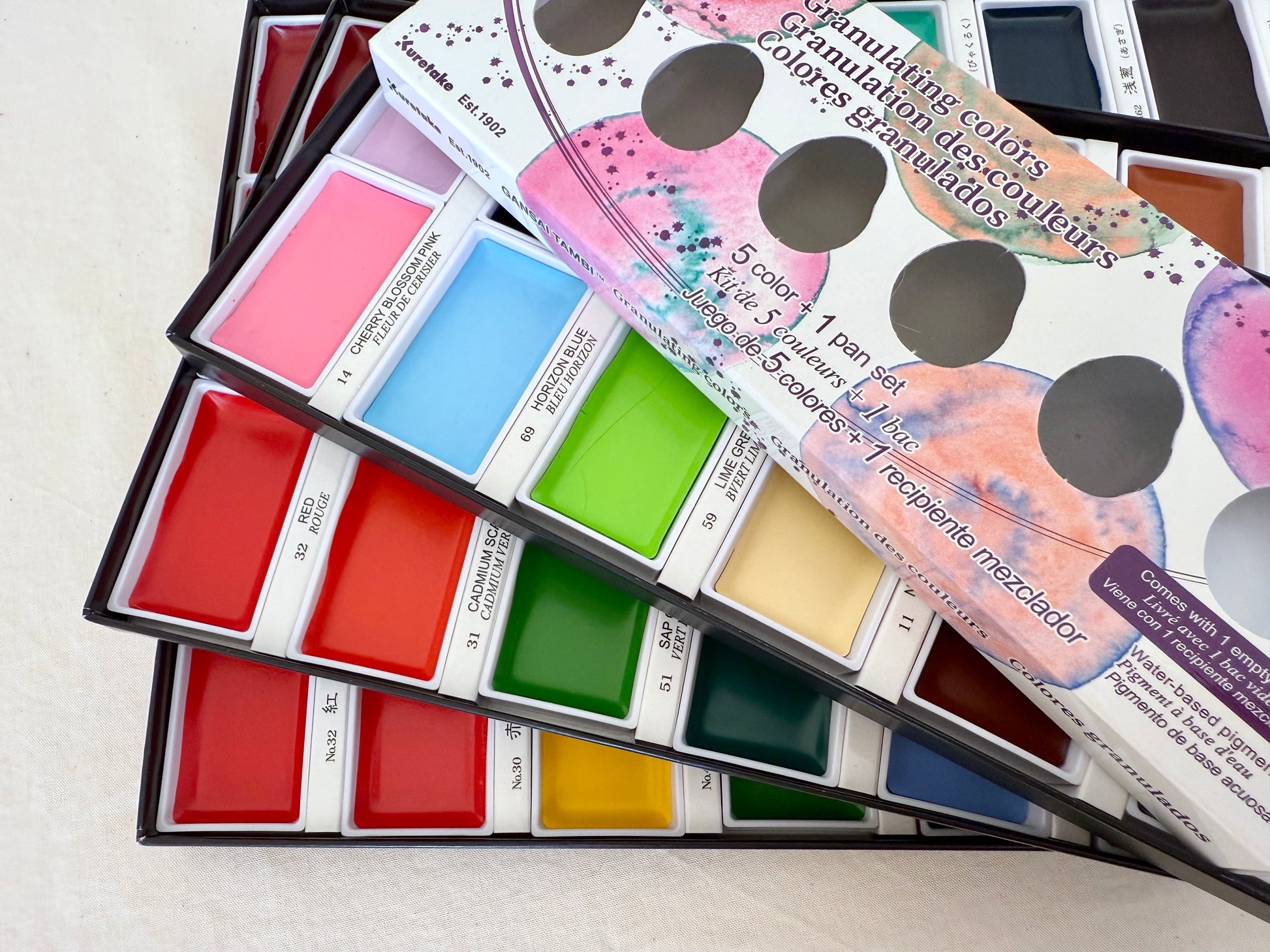 The granulating paints are two toned. There are small granules that dissolve as you paint, creating different colored spots within the main color.