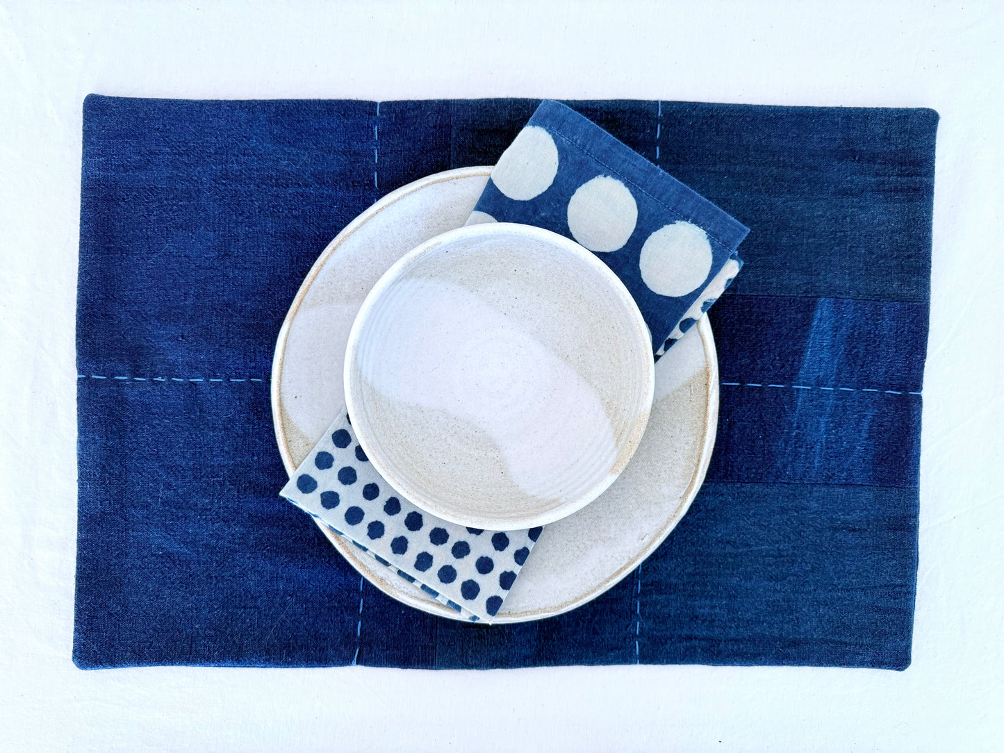 These indigo dyed cotton napkins are hand crafted by skilled artisan partners in Pakistan.