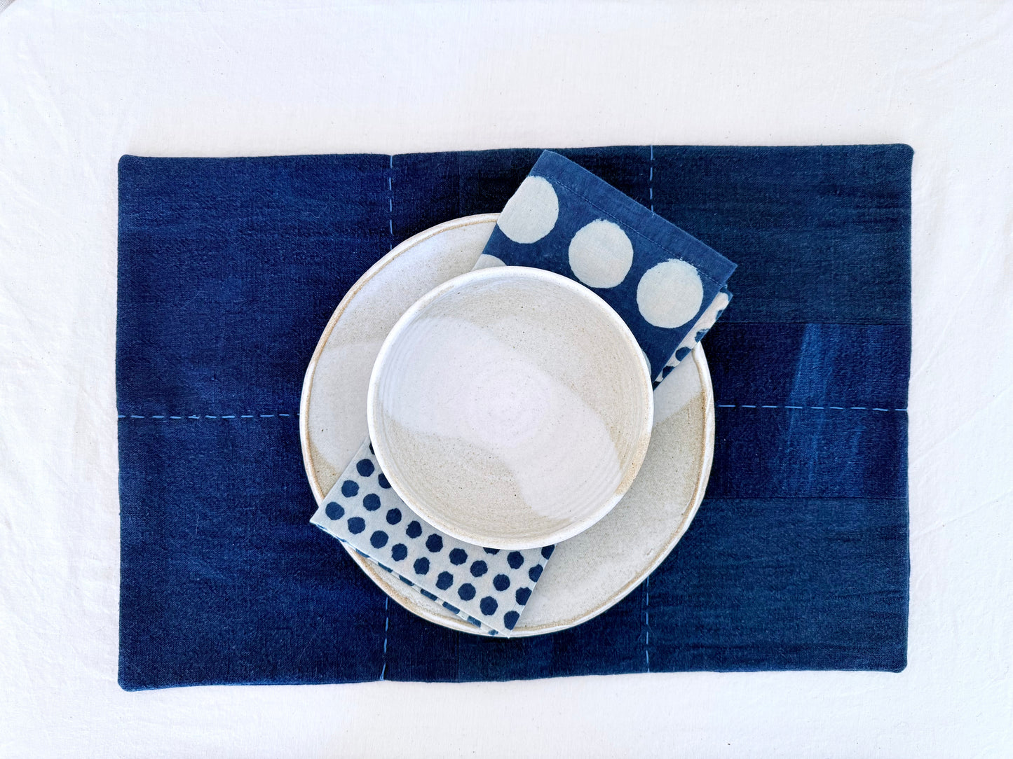 These indigo dyed cotton napkins are hand crafted by skilled artisan partners in Pakistan.