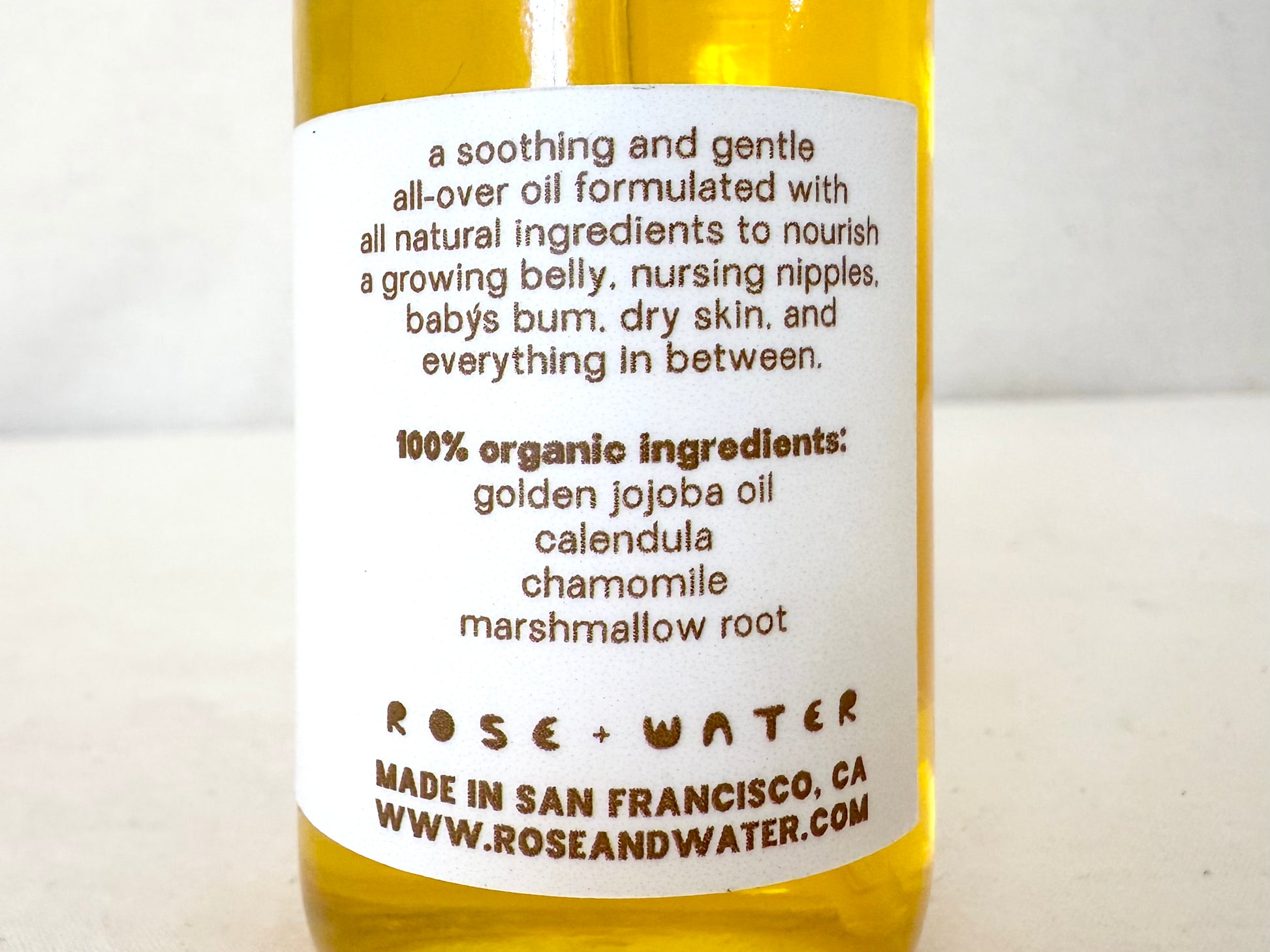 A soothing and gentle all-over oil formulated with all natural ingredients to nourish a growing belly, nursing nipples, baby’s bum, dry skin, and everything in between.