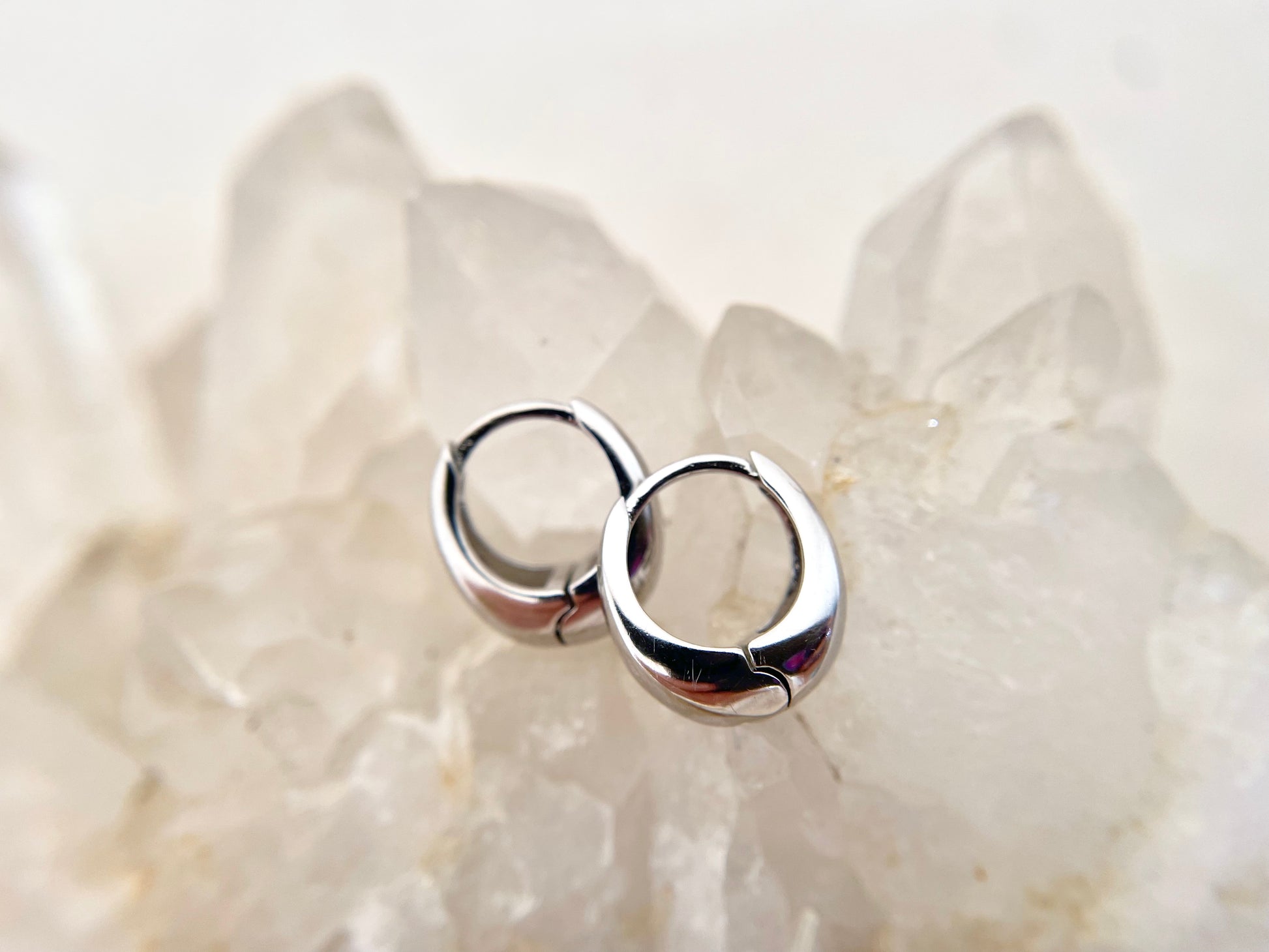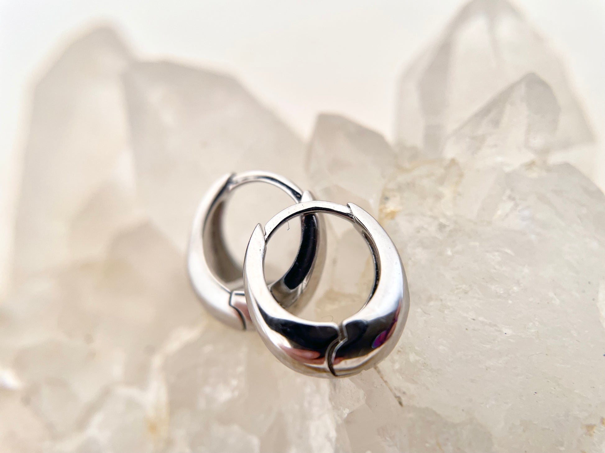 These sweet little sterling silver nugget huggies go well with everything. They're easy to wear on their own, or paired with other earrings for people with multiple piercings. Seamless huggies are comfortable to sleep in with no posts or sharp bits poking you at night. Perfect for people who don't like taking their earrings off.